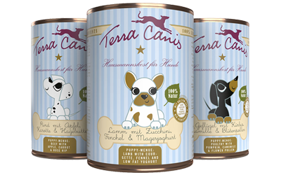 Terra Canis ist die erste Feuchtnahrung auf dem Markt mit 100% Rohstoffen in Lebensmittelqualität und hat damit völlig neue Qualitätsmaßstäbe im Futtermittelmarkt gesetzt. Alle unsere Menüs werden von Metzgermeistern inspiriert, entwickelt und kontrolliert. Im Gegensatz zu vielen anderen Herstellern verzichtet Terra Canis völlig auf die Beigabe minderwertiger Rohstoffe (das sogenannte K3-Material). Ein Unterschied, den man sofort beim Öffnen der Dose erkennt: Terra Canis riecht und schmeckt - anders als alle anderen Produkte auf dem Markt - wie eine leckere, selbst zubereitete Mahlzeit. Besonders für Welpen und junge Hunde ist eine ausgewogene, artgerechte Ernährung wichtig. In den ersten Hundemonaten werden die Weichen für eine gesunde Entwicklung der Organe, Knochen und des Immunsystems gestellt. Deshalb empfehlen wir die Fütterung mit Terra Canis von Anfang an. Für Sie als Profi, Tierfreund und Partner bietet Terra Canis ganz besondere Einkaufskonditionen.